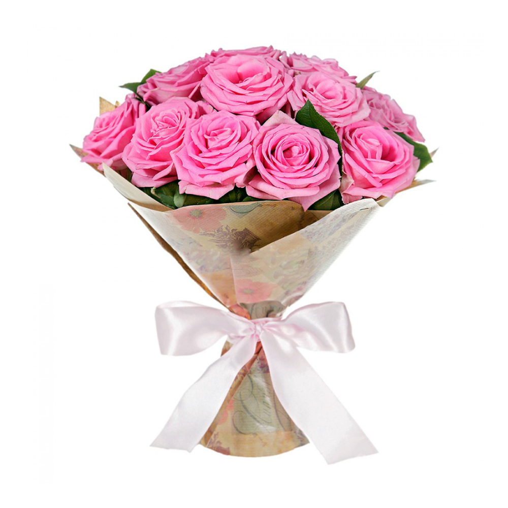 Букет из 11 розовых роз с рускусом – нежность в каждом лепестке