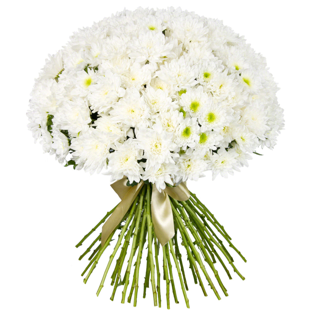 Букет из 51 белоснежной хризантемы – символ чистоты и долголетия