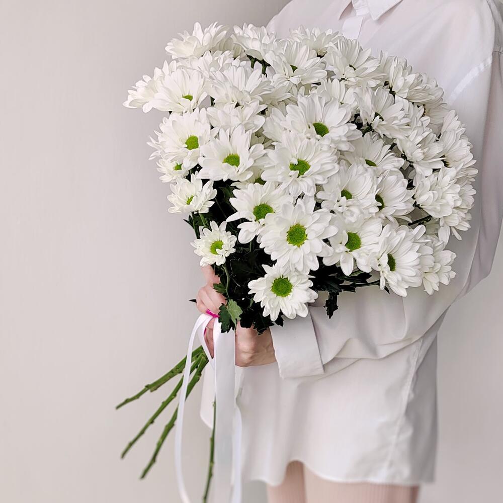 Очаровательный букет «Ромашка» из 9 белых кустовых хризантем напоминает летнее поле. Эти пышные цветы с нежными лепестками создают атмосферу чистоты и уюта. Идеальный выбор для подарка близкому человеку или украшения интерьера. Хризантемы в Феодосии.