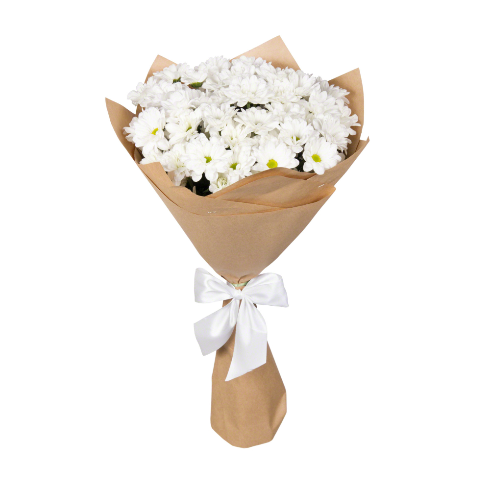 Пышный букет из 9 хризантем в крафт-бумаге – элегантность в каждом лепестке